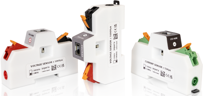 最新世代の imperix センサーは、B-Box 4 コントローラとの最適な統合を目的として設計されており、その高周波アナログ入力を最大限に活用します。これにより 500 kHz を超える高速制御実装を可能にする一方で、全チャンネルにおいて MHz 帯域でのフル帯域データロギングも実現します。