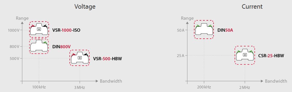 VSR-1000-ISO は、絶縁型 ±1000V 対応の高電圧センサーであり、DCバス電圧、AC系統電圧、さらには高速変動電圧まで幅広く測定できる汎用性の高いセンサーです。