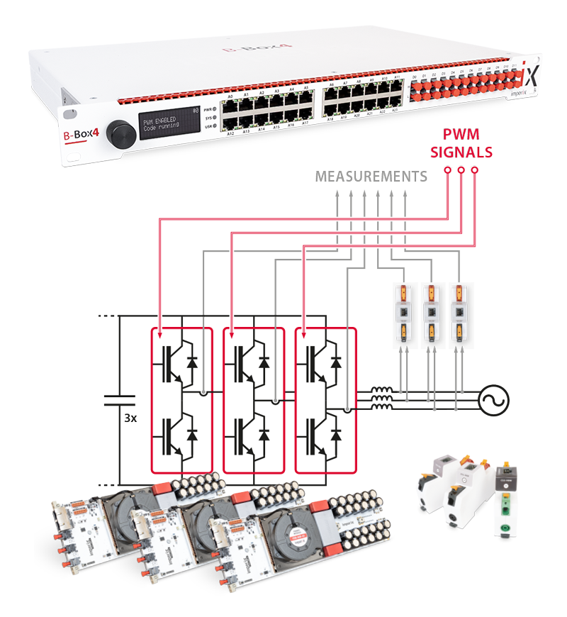 モジュールに直接プラグアンドプレイ接続できるB-Box 4は、最大12個のハーフブリッジを駆動でき、複雑な制御アルゴリズムに必要な処理能力を備えています。