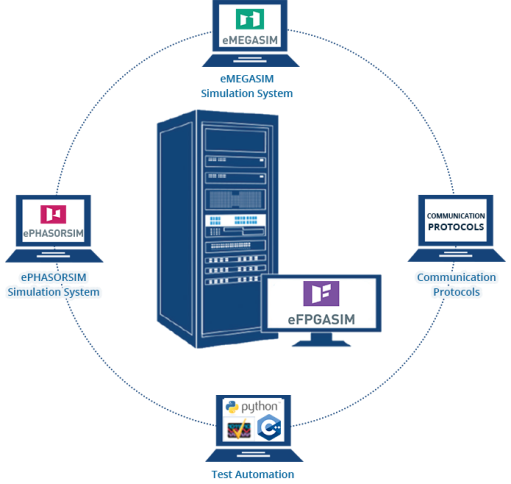 eFPGASIMシステムにより、エンジニアは以下の製品との統合により、テストをさらに進めることができます。- eMEGASIMは、パワーエレクトロニクスデバイスを、マイクログリッドから非常に大きなパワーグリッドに接続できるようにします。