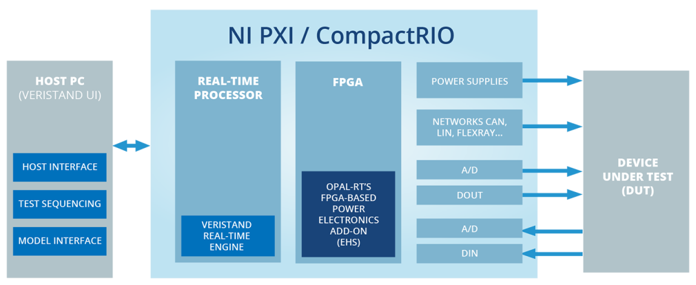 NI(National Instruments)とのパートナーシップにより、OPAL-RTのFPGAベースのパワーエレクトロニクスツールボックス(eHS)を、VeriStand Add-OnおよびLabVIEW SDKを通じてNIプラットフォームで利用できるようになりました。NI VeriStandのアドオンは、EV自動車テストを新たなレベルに引き上げる画期的な統合ソリューションです。