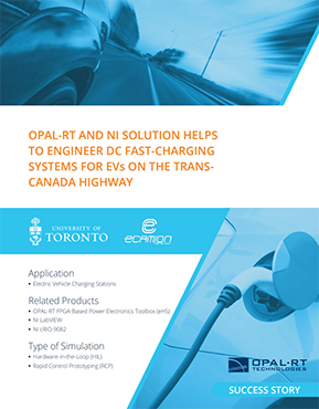 カナダの電気自動車インフラストラクチャプロジェクトの1つとして、トロント大学の応用パワーエレクトロニクスセンター(CAPE)はエネルギー貯蔵会社eCAMIONと提携して、世界で最も長いカナダ横断高速道路のEV充電ステーション用のDC高速充電システム(DCFCS)を構築しましたエンジニアリングチームがOPAL-RTのFPGAベースのパワーエレクトロニクスツールボックス(eHS)を使用することで、開発プロセスが促進され、開発コストが削減され、高電圧および高電流でのシステム開発に固有の安全性リスクが軽減されました。