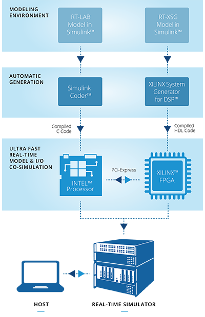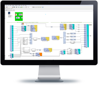 RT-XSGは、FPGA HIL(Hardware-in-the-Loop)およびRCP(Rapid Control Prototyping)シミュレーションにすぐに使用できるSimulinkファンクションブロックです。FPGAの構成、リアルタイムRT-LABとHYPERSIMシミュレーションモデル、およびFPGA上で実行されるユーザー定義のカスタムシステム間の高帯域幅データの転送を管理します。