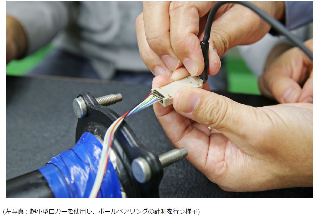 車のエンジン側トランスミッションについているPTOと呼ばれる部品のベアリングを「テーパーローラーベアリング」から「ボールベアリング」に変更した際の周囲に及ぼす影響を把握するための実働計測に「超小型データロガー」が使用されました。