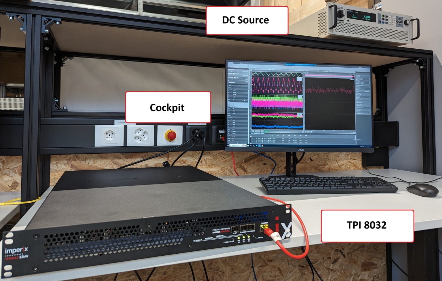 本実験は、DC 電源および交流系統に接続された TPI 8032 を用いて実施されました。