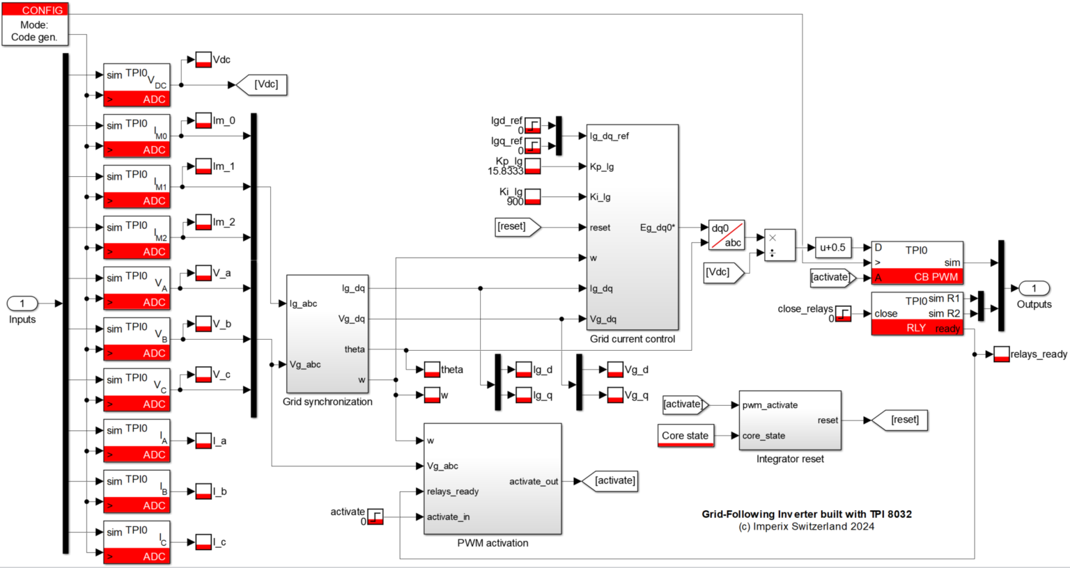 系統追従型インバータの制御は Simulink 上で実装されています。